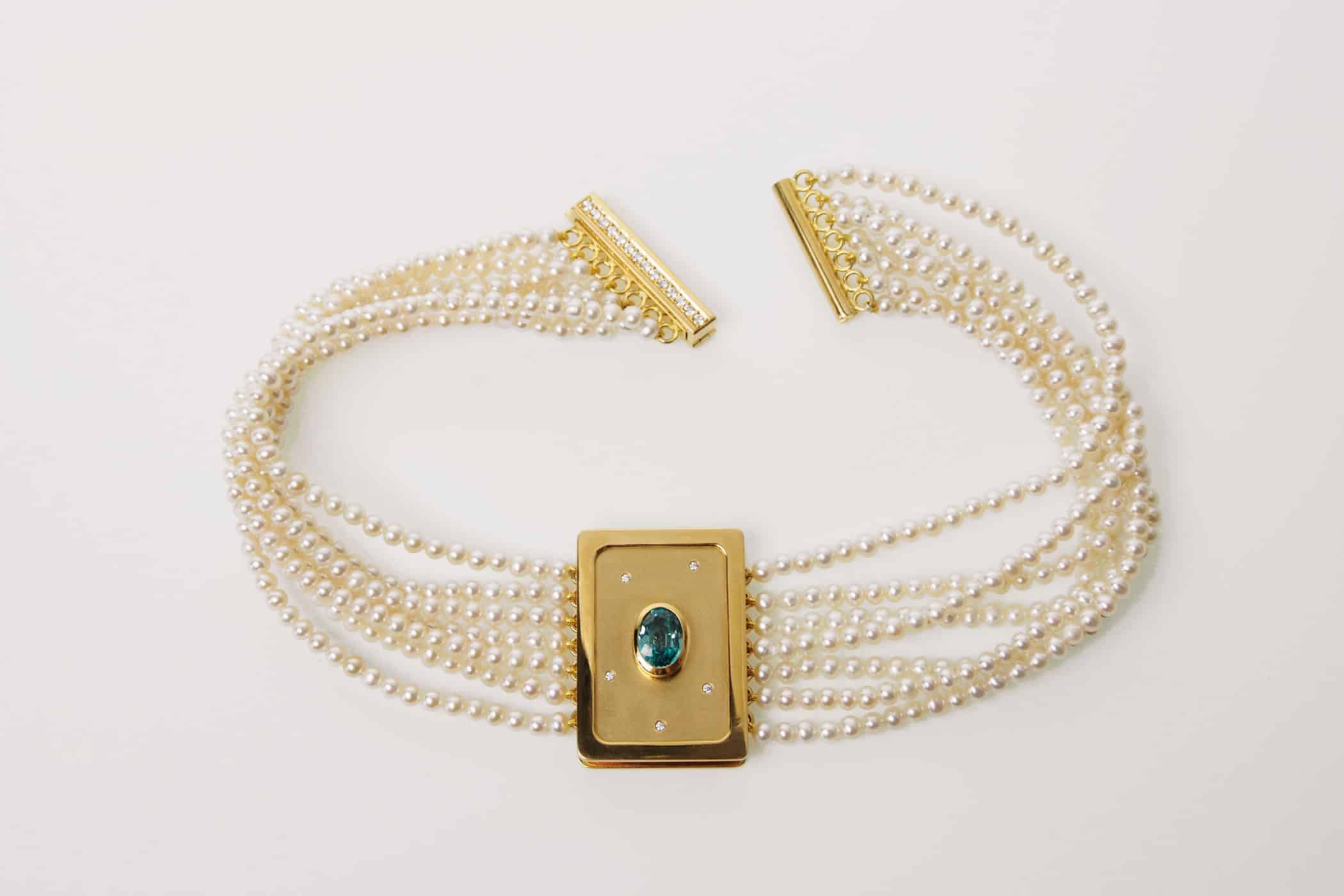 Kahtrin Rauh — Collier de Chien — Gelbgold/Weißgold 750 — Zirkon / Brillanten / SWP