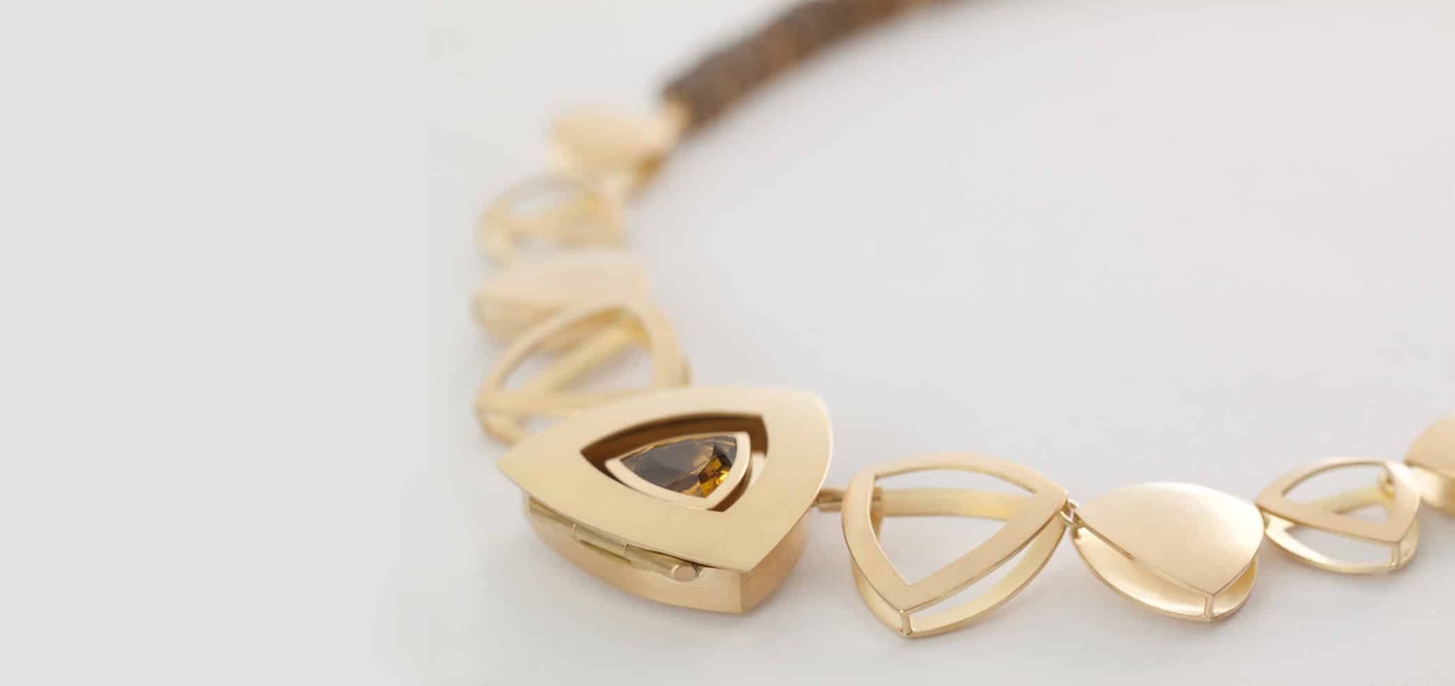 Vanessa Tilg — Variabel tragbares Collier aus Gelbgold, mit Citrin, Rauchquarz und Zirkon