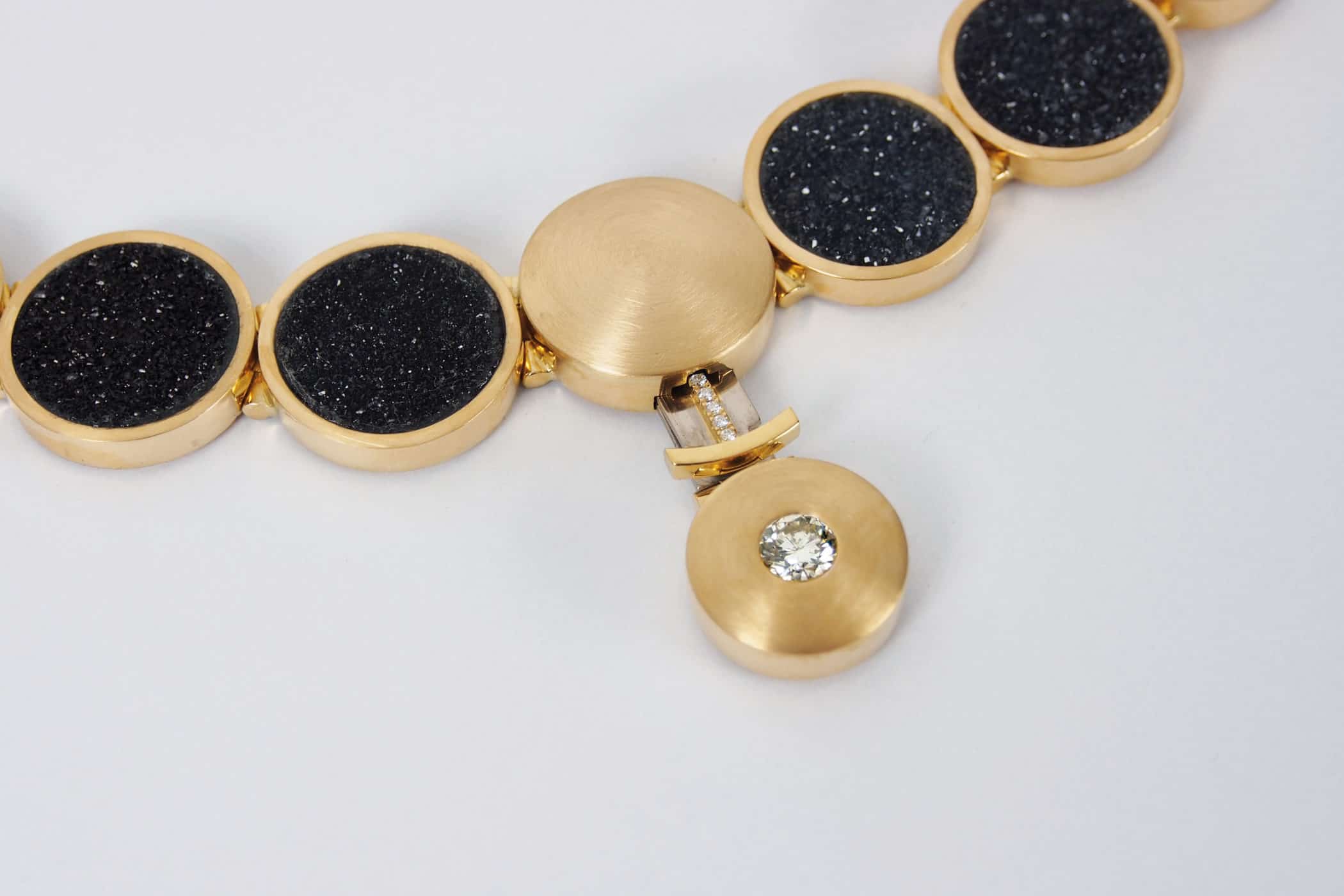 Nina Wiedemann — Collier aus Ronden mit Scharnierverbindung, Gelbgold 750 und Brillant